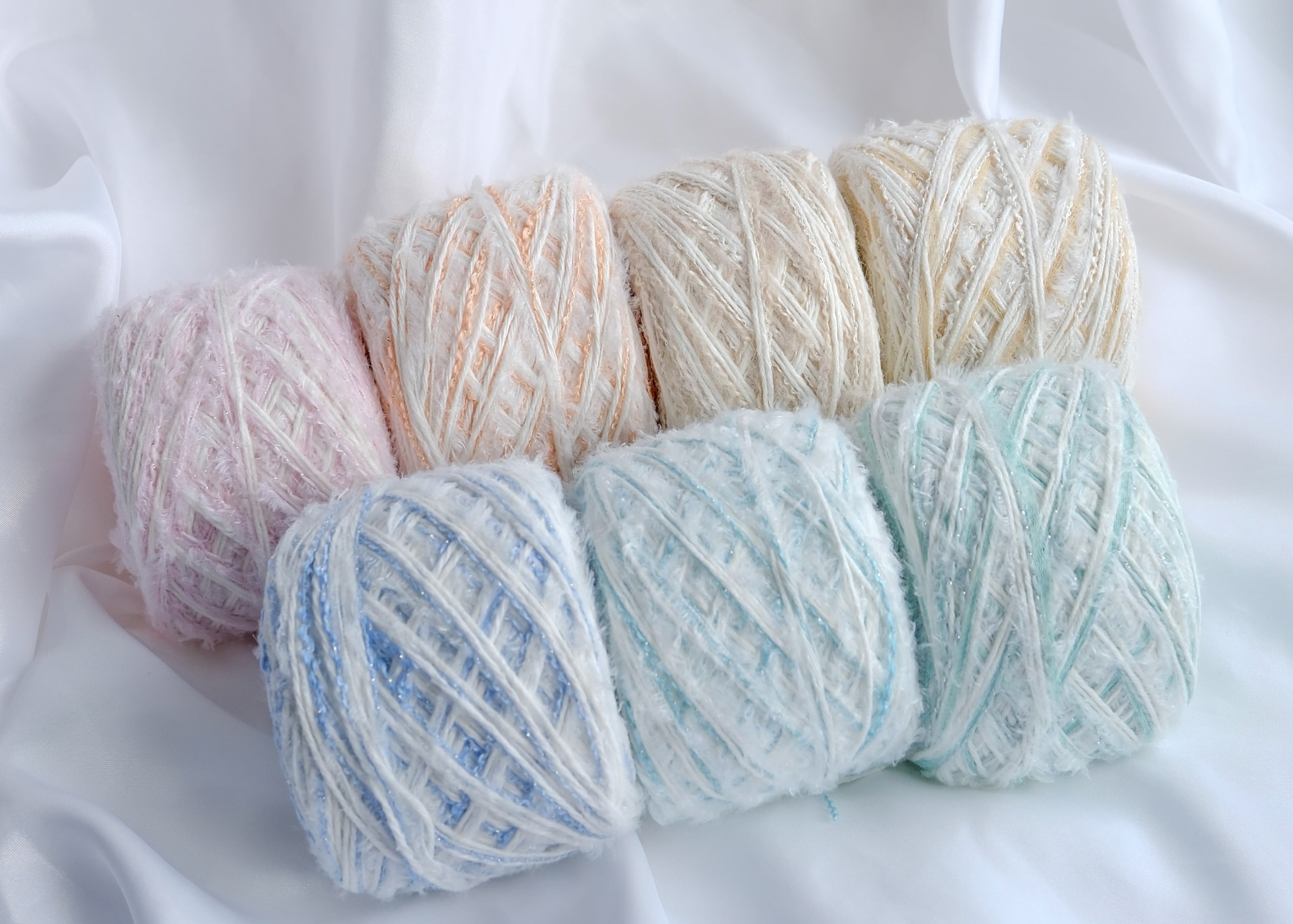 ソーダに浮かぶバニラアイスが少し溶けたフロートのような毛糸たち。
